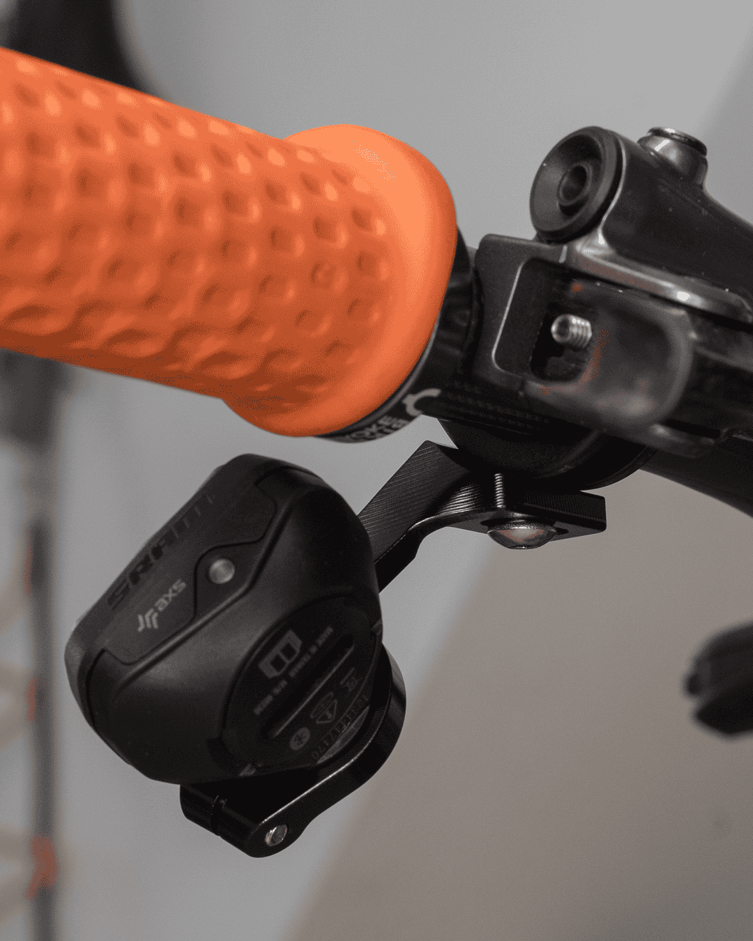 Screw the SRAM Pod Controller for your AXS drivetrain directly onto the brake lever of your Shimano brake. This allows the Pod to be positioned more ergonomically and ensures it is always within easy reach. The adapter also ensures a clean look and a tidy cockpit.