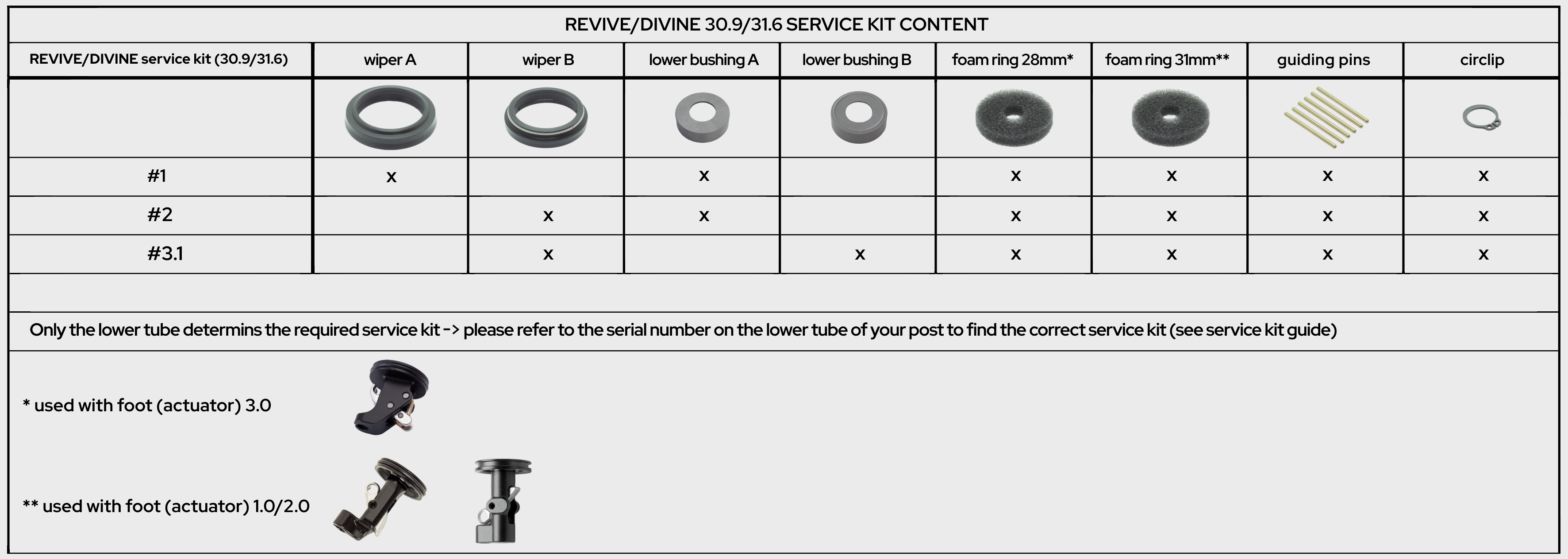 There are three different service-kits for the REVIVE and DIVINE. The kits are not compatible with each other!